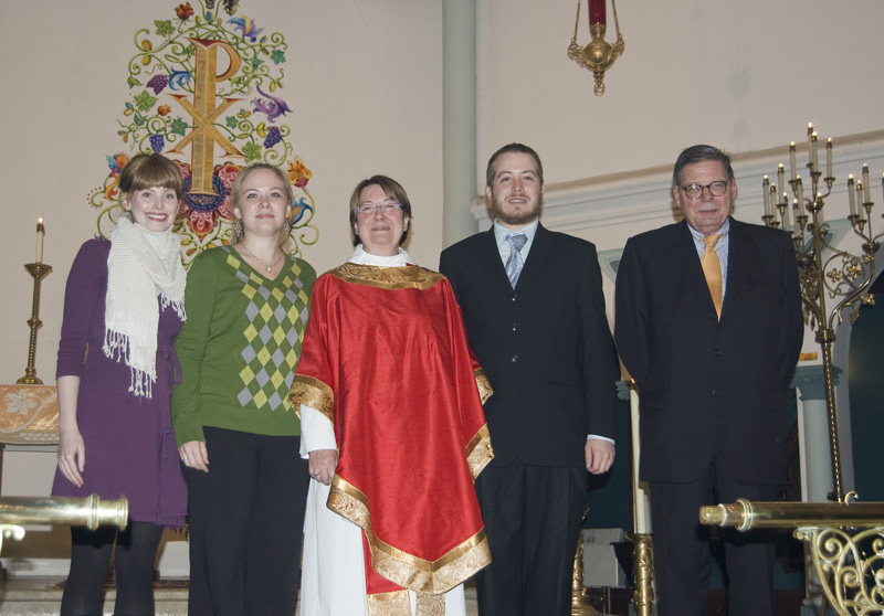 In October of 2008, Diana McKelvey Rogers was Ordained as an Episcopal Priest. Shown below are: : Nora McKelvey (her neice), Keely Rogers (her daughter), Diana, Tom Rogers (her son), and Gerald McKelvey (her brother, WASH Class of '61)
