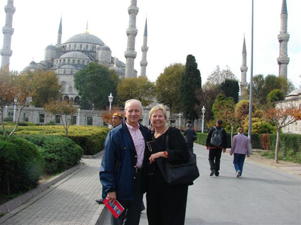 Ed Beck and his wife Marie, and classmate Jeff Rock visited former exchange student Melih Ferelie in Istanbul in April 2012.
